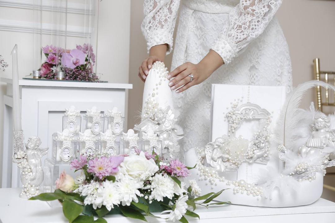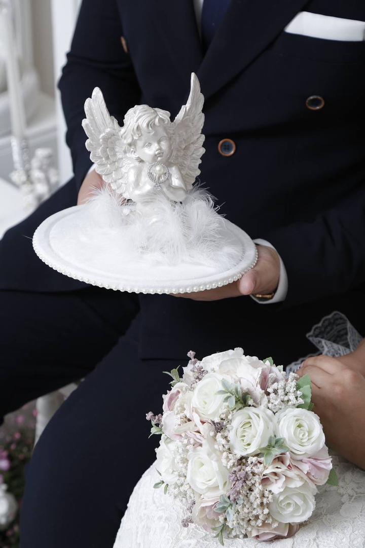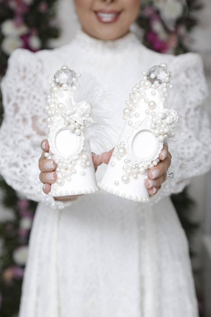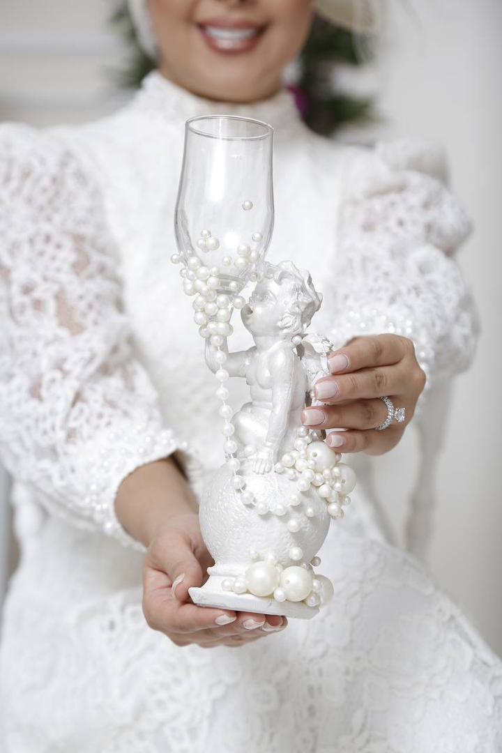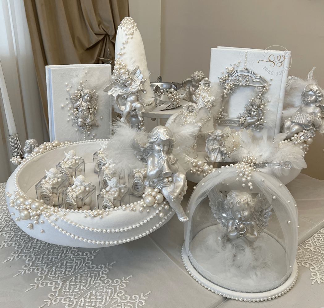 ست بلهبرون مدل فرشته، ترکیبی چشمنواز از مرواریدهای براق و فیگورهای فرشته با رنگ صدفی لوکس است.