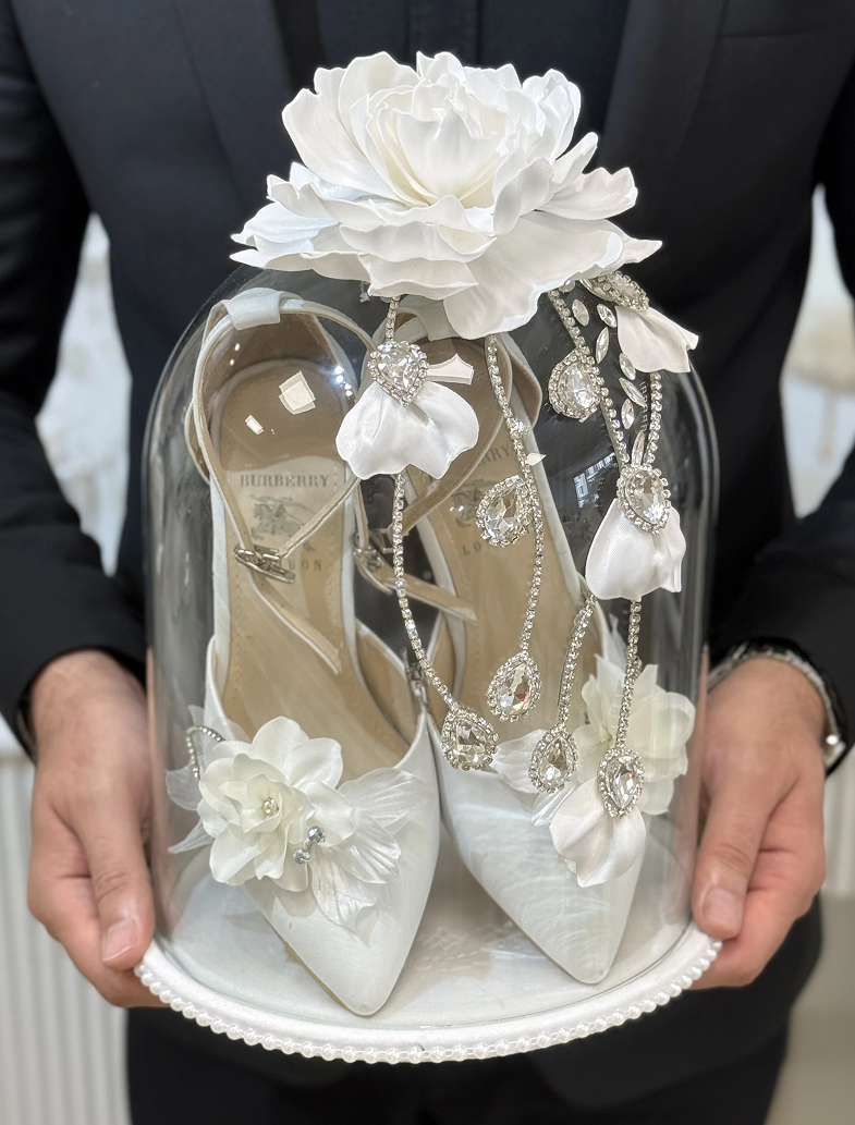 ترکیب بی نظیر از گل های سه بعدی درکنار سنگ های سوارسکی باعث شده تا این ست بی نظیر جز پر فروش ترین و ژورنالی ترین کار های مجموعه باشد. طراحی سه بعدی قاب قرآن کریم با کریستال های متحرک سبب شده تا علاوه بر نمای زیبا، در پروژه های عکاسی عروس هم مورد استقبال قرارگیرد. لازم به ذکر است گل های سه بعدی کار تماما کار از جنس ساتن درجه یک و کار دست می باشند.