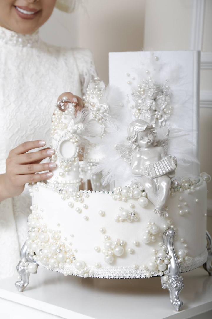 • تزئینات مروارید و پر در کنار قاب فرشته، مرواریدهای کارشده و پرهای ظریف، زیبایی و روح مراسم را دوچندان کرده‌اند.